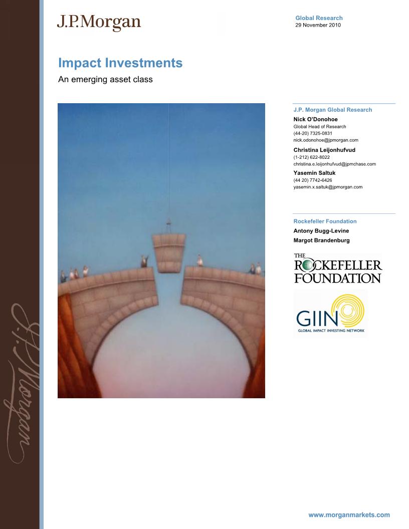 The publication of JP Morgan’s seminal report “Impact Investments: An emerging asset class” (29 Nov 2010) is the watershed proclamation that Impact Investment is going mainstream. In the wake of the 2007/8 financial crisis we should be encouraged when Nick O’Donohoe, Global Head of Research for JP Morgan, tells us “From our chief executive officer down, there’s a strong sense at JP Morgan that banking institutions have the ability to make a positive contribution to society” – So wherein lies the rub?