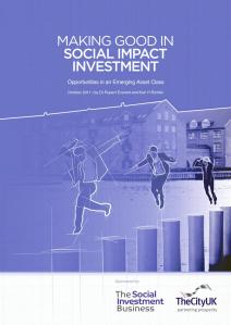 Social impact investment has the potential to evolve from being an emerging market to a very large, mature investment market attracting mainstream investors, according to a report published today. Making Good in Social Impact Investment: Opportunities in an Emerging Asset Class argues that the UK is well placed to be a global leader in the field, as social impact investment builds on our record as home to a well-developed, not-for-profit, charitable and voluntary sector and our historic strengths in financial services.